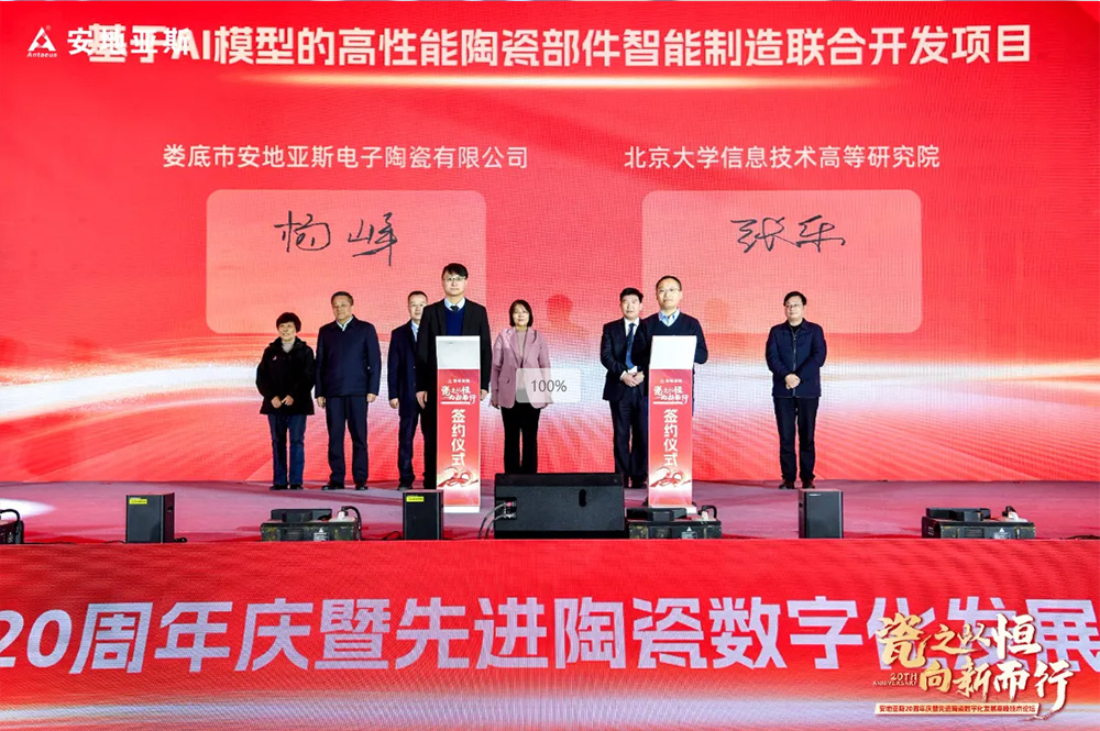 活動(dòng)中,在市領(lǐng)導(dǎo)和各位嘉賓的見證下,安地亞斯與北大信息技術(shù)高等研究院簽約“基于AI模型的高性能陶瓷部件智能制造聯(lián)合開發(fā)項(xiàng)目”,與世界陶瓷科學(xué)院簽約“共建高性能先進(jìn)陶瓷材料聯(lián)合實(shí)驗(yàn)室”。北大信息技術(shù)高等研究院高級(jí)研究員、智能物聯(lián)軟硬件產(chǎn)業(yè)化實(shí)驗(yàn)室主任易海明圍繞《人工智能賦能新型工業(yè)化》,世界陶瓷科學(xué)院院士、亞太材料科學(xué)院副院士林華泰圍繞《高性能氮化硅基陶瓷及零部件研究》,分享了最新的研究成果和實(shí)踐經(jīng)驗(yàn),共同探討人工智能、硅基陶瓷的最新進(jìn)展、創(chuàng)新應(yīng)用和未來(lái)趨勢(shì),讓大家受益匪淺。